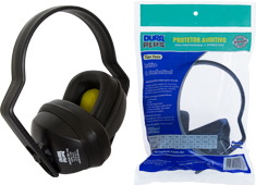 Protetor e atenuador de ruídos Dura Plus, tipo fone (concha), com haste de suporte em nylon de alta resistência, conchas em PVC e espumas antialérgicas.